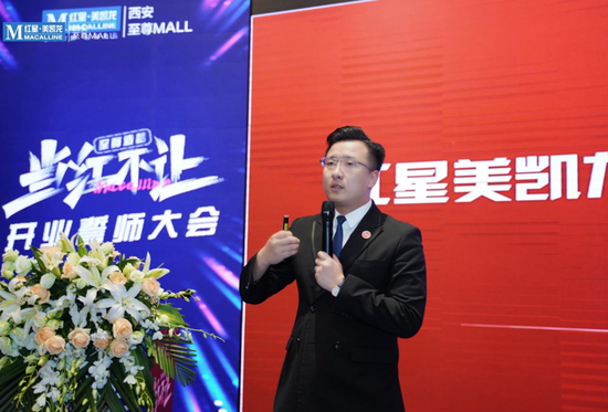下午14点40分,红星美凯龙陕西省营发中心总经理李雪峰先生致开幕词:他表示,红星美凯龙西安至尊Mall是红星美凯龙在西安首个自营双Mall旗舰店,将享有红星美凯龙集团最具优势的资源,成为全国最高端的商场之一,并对至尊Mall的未来充满信心。