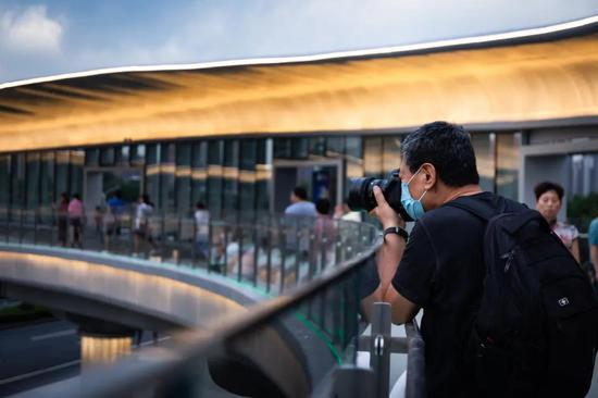 “我很早在新闻上看到说7月1日会开放,对这个项目就非常期待,今天下午想着可能会出现晚霞,专程抽时间过来逛一逛,拍一些好看的照片。”7月3日下午,摄影爱好者吴先生在天桥上不断挑选着合适的角度,快门“咔嚓”不停,记录着这座天桥的美丽瞬间。