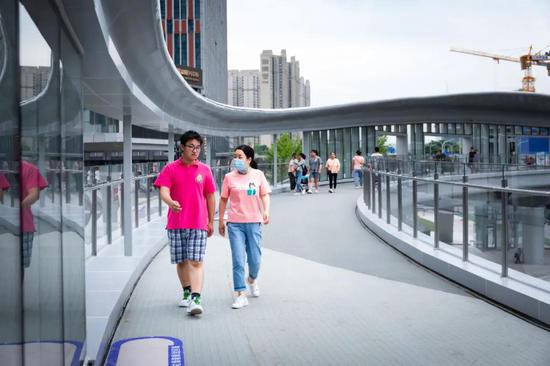 “我在朋友圈和抖音上看到曲江有座非常漂亮的天桥建好了,离我们家还不远,今天遛弯就专门过来看看。”家住新开门附近的何女士,趁着周末午后的闲适时光带着儿子来天桥遛弯,两人在造型优美的天桥上边走边聊,心情十分愉悦。“第一印象就感觉高端大气,建筑风格比较独特,大面积的玻璃材质和很多的电梯,都让人感觉配置很高档。”小彭笑着说。