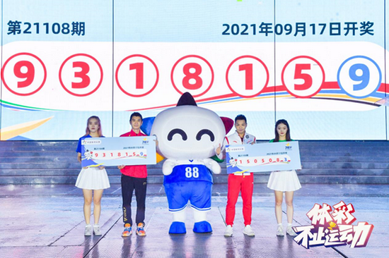 活动现场,设置多个有奖互动环节,参与者除了可以通过参与趣味活动得到 “幸运乐小星互动抽奖”的机会外,活动直播中还有“奥运冠军抽奖环节”,由何冲、邢傲伟和乐小星共同开启大奖派送,并亲自送出超级幸运大奖。奖品丰富多彩,不仅有跑步机、筋膜枪、运动时尚腰包、定制足球和运动T恤等惊喜好礼,更有体彩为十四运加油助兴发行的“享全运 迎好运”主题即开票。