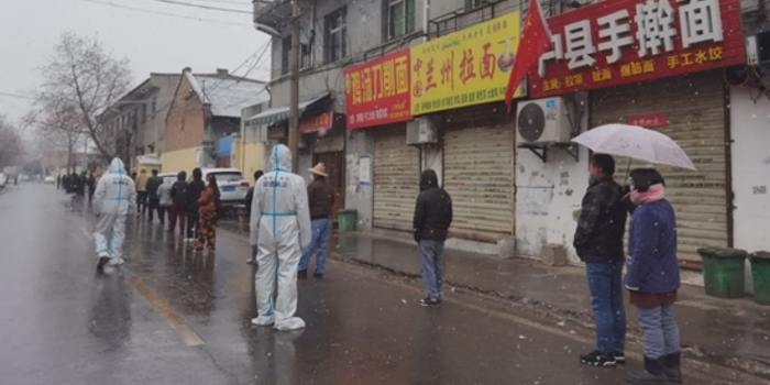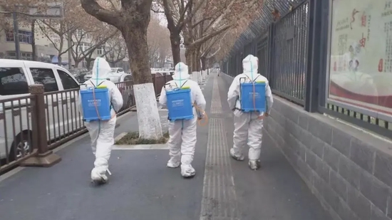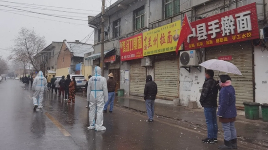 西咸新区沣东新城城管交通局上下同心,同各行各业防疫服务保障工作人员,在城市广场、村组、小区、街头巷尾各个角落,不畏风雪严寒毅然坚守岗位。