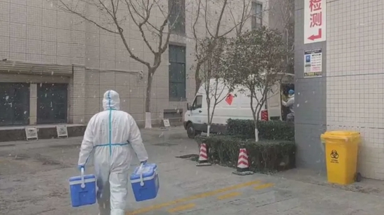 在高新区各重点人群核酸采集点,执法队员冒着大雪,全力做好采集点秩序维护、身份信息录入、居民动员引导以及样本转运与交接等工作,与医护人员、社区工作人员及相关运输车力量的协调配合,积极引导小区居民有序排队。