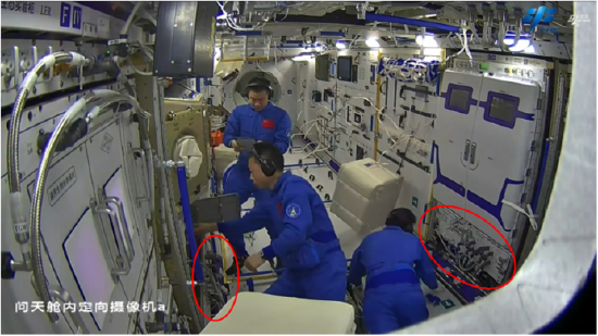 从中国载人航天官方公布的问天实验舱视频中可以清楚地看到西安航天动力研究的电动阀门组件(图中红圈)。视频中可以看到,陈冬、刘洋、蔡旭哲3位航天员正在问天实验舱忙碌,他们正在进行的是对科学手套箱与低温存储装置的解锁与安装工作。