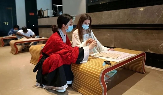 由礼仪老师讲解秦代的“立容、坐容、行礼、迎宾、宴请”等礼仪姿势。