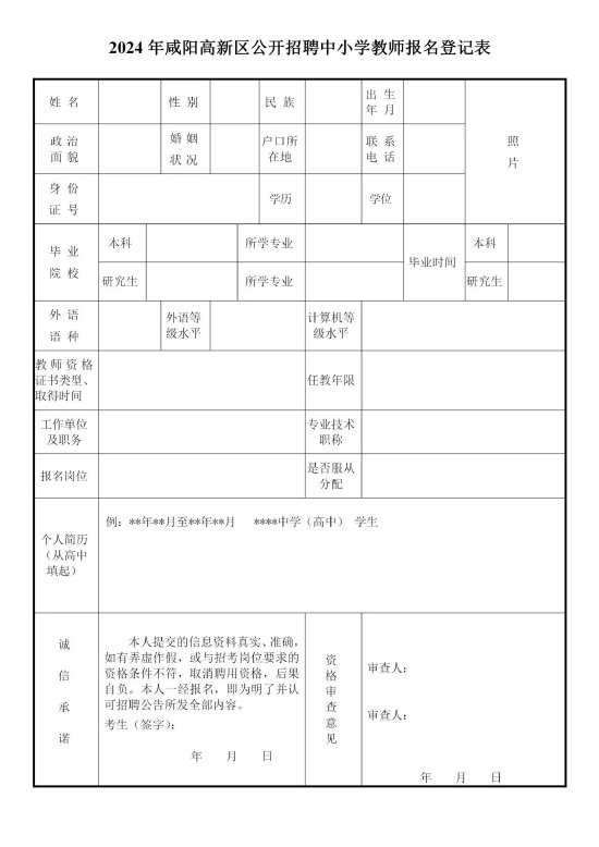 咸阳高新区公办学校教师岗位(中小学各科教师)