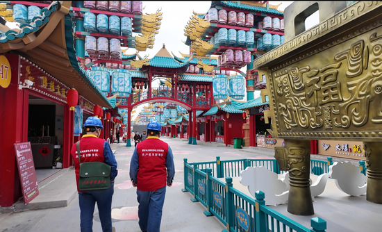 国网西安供电公司工作人员在大唐不夜城进行安全用电检查