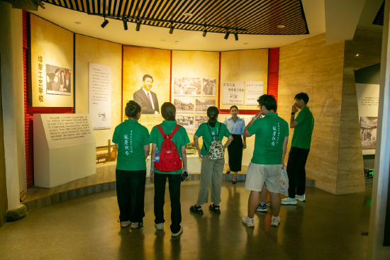 图为实践团成员在展馆内聆听讲解员讲述工合历史