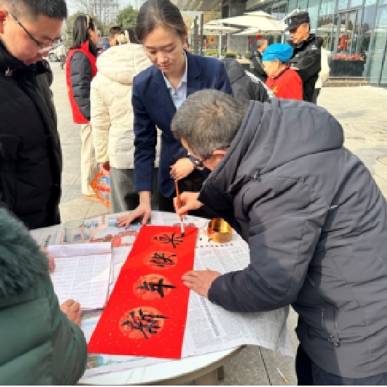 瑞众保险陕西分公司汉中中支联合汉水社区开展“笔尖纳福贺新春 金融相伴护民生”主题活