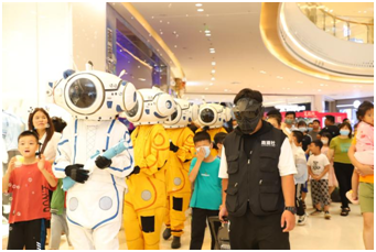 本次“巡星计划”IP展共分为两个阶段,7月12日-7月15日是为期4天的静态展,安置于新城控股集团西安西咸吾悦广场的1号门处,7月16日至7月17日是本次的IP展的重头戏,我们的巡星者“达达”和“波波”在活动的现场从沉睡中被唤醒。语音对话现场观众,气氛达到空前热潮。活动当天为了迎接我们的“天外来客”,新城控股集团西安西咸吾悦广场还在现场准备了夏日泳池泡泡趴、水枪大战、潮力摇摇船等互动游戏,元气夏日,满分开启游戏。