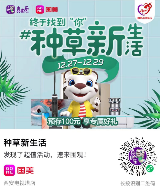 关注距离跨年仅剩4天,四天之后的2021将成为历史,2022将伴随我们步入新的一年。在年末倒计时的日子里,国美狂撒35周年百亿生日补贴,助大家尽情嗨购大牌家电,陕西国美也不负众望,为国美35周年庆特设“种草新生活”主惠场!纵观国美35年,始终以价格出圈,陪伴用户,以品质和服务回馈用户,此次“种草新生活”活动也不例外,秉承着“真低价”原则,与大家一起,发现更多生活中值得推荐种草的好物!