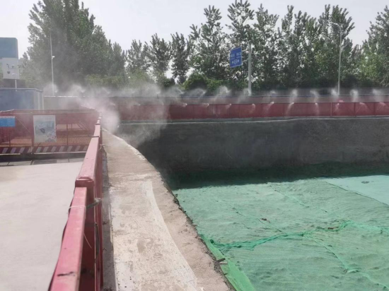 在白桦林天成项目规划初期,经发置业便对项目建设提出了“创区域标杆”的要求。环保是国家绿色发展的主旋律,更是保证项目稳定推进的重要因素,天成项目坚决执行国家“6个100%”、“7个到位”的要求。通过沿线围墙、围挡、临边设置了三大喷淋系统,保障工程基本降尘需求;根据项目施工作业面,定点投入雾炮,确保重点涉土区域湿法作业;移动式洒水车定时冲洗,确保施工道路100%无扬尘隐患;创新引入挖机配套喷雾设备,根本解决土方机械移动扬尘隐患;临建工程灵活采用格栅地面,不积土、不起尘。在后期的主体阶段,项目还将策划依托外架灵活布设爬架喷淋、楼层水幕等设备,确保项目全周期绿色环保施工。