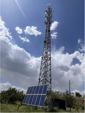 在榆阳区古塔镇张雷沟村周边,一大片光伏设备正将太阳能转化为电能,满足着旁边移动基站的电力需求。