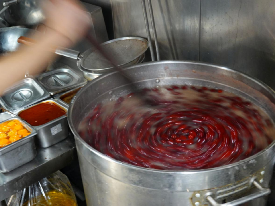 为了能让环卫工人及时吃上这碗爱心粥,花少爷的粥的工作人员凌晨3点钟就开始熬制,不到8点,就将提前打包好的粥整齐堆放在大庆路林带内道班房门口。