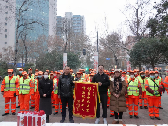 活动最后,莲湖环卫集团事业部部长和环西项目部经理共同将一面绣有“彰显企业大爱,情系环卫工人”的锦旗赠送给了花少爷的粥,对企业作出的爱心善举表示诚挚感谢。