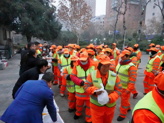 活动现场,出席活动的环卫集团领导和花少爷的粥的工作人员将送来的腊八粥分发给现场的环卫工人代表,一边发放,一边与大家亲切交谈,详细询问他们的身体情况、饮食起居和工作情况,并嘱咐他们注意保暖,照顾好身体。