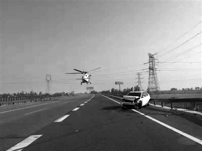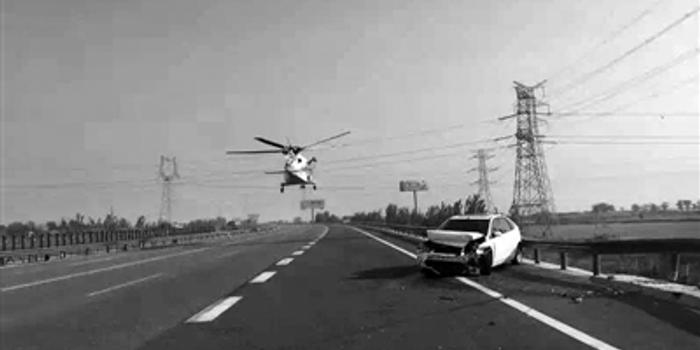 女子高速路上遇车祸 直升飞机空降紧急救援
