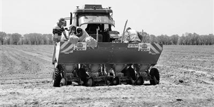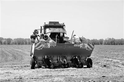 时下,在榆林市定边县堆子梁镇种羊场村的马铃薯高产示范田里,北大荒马铃薯集团的脱毒种薯正在有序播种,这些从黑龙江而来的马铃薯脱毒种薯,经过了晒种、催芽、切块,再与草木灰搅拌装进农机播种到田地里,成为了农民眼里增收致富的“金豆豆”。