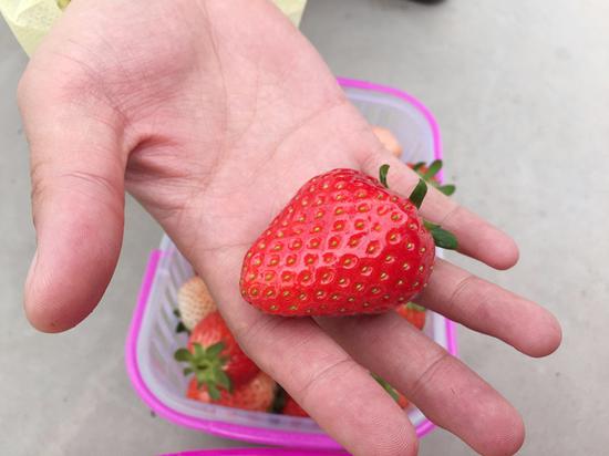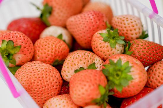 工作人员特别为我们介绍了草莓家族的各位家族成员,色泽鲜红的“枝纯”口感香醇浓郁,是当之无愧的星球女王;而星球公主“白桃熏”通体纯白,口感清冽淡然,全中国只有这里才得以看到它美丽的模样;还有引自西班牙的“圣诞红”和引自日本的“章姬”等王国成员,都在草莓星球里其乐融融的生活着。