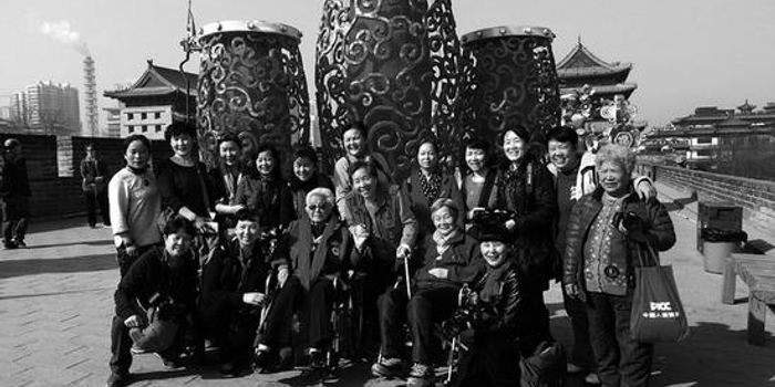 来到南门登城墙处,由于该处全部是台阶,无法将轮椅直接推上去,孔秀梅老人尝试着站立了4次,打算亲自登上城墙,可由于腿部无力,只好坐了下去。女志愿者们顿时抓着轮椅的各个部位说,“今天抬都要把老人抬上去。”话音刚落,大伙便连人带轮椅将老人抬了起来,一口气把老人抬到城墙上。