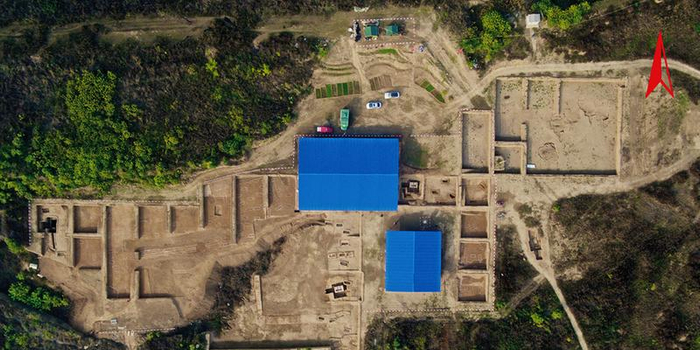 杨官寨遗址庙底沟文化墓地发掘区航拍图(陕西省考古研究院供图)