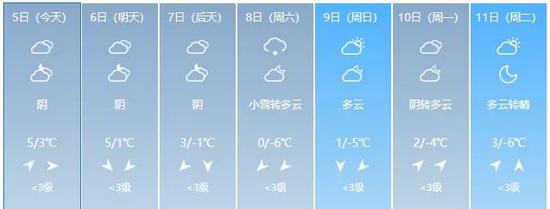 预计今天晚上到6日:多云,1~5℃,偏北风3-4级;