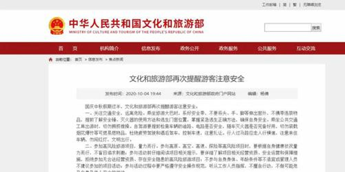国庆中秋假期过半,文化和旅游部4日晚间发布出行提示,再次提醒游客注意安全。