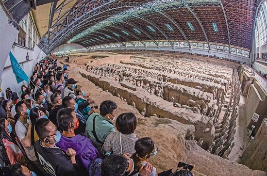 乐享假日 10万多人次“打卡”兵马俑 陕西日报 10月05日 11:22 关注 确定不再关注此人吗 10月4日,秦陵博物院兵马俑博物馆里游客络绎不绝。国庆假期前4天,秦陵博物院接待游客10万多人次。记者 袁景智摄 分享文章到: