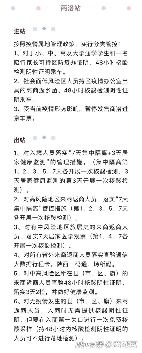 出站:查验陕西一码通、行程码,测温,48小时核酸阴性证明,落地开展一次免费检测。