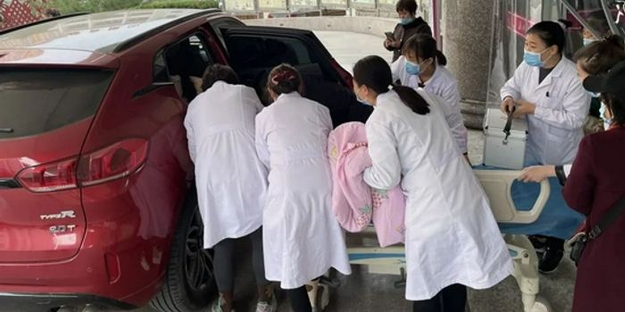 10月25日清晨10时许,一位男士突然跑向延安市人民医院导医台,边跑边呼叫:“护士,快!娃娃快生出来了,快!快!在大门口了”。当时正值门诊就诊高峰期,门诊导医李苗听到呼叫声后,赶忙拿出手机拨打产科(妇产科二病区)电话,告知现场情况联系医生,门诊导医何洋立即电话联系了产科门诊医生,简要说明了患者当时的状况,并当即汇报科主任,启动门诊紧急预案,开启孕产妇绿色通道。同时,闻声而来的工作人员不断安抚患者及家属情绪。约两分钟后,产科门诊医生乔娜、副主任薛爱琴携带急救箱先后到达现场,临危不乱的为患者进行紧急处理。