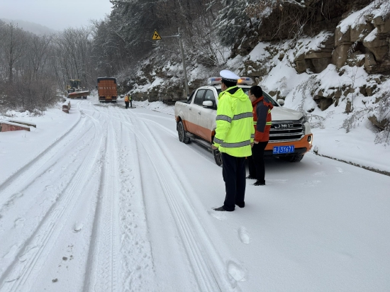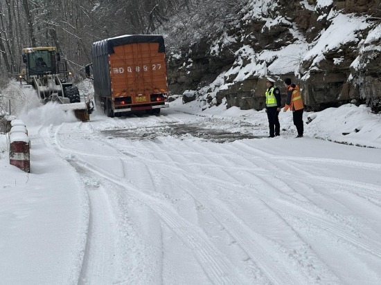 二是及时启动恶劣天气应急预案,适时开展临时交通管制。对因降雪引起不具备通行条件的路段,及时实施临时交通管制,管制期间禁止大型车辆、七座以上客运车辆、旅游车辆、重型货运车辆、危化品车辆通行,小型车辆需佩戴防滑链方可通行。