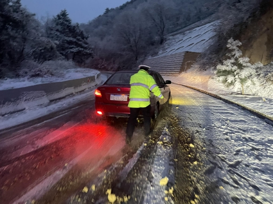 三是加强巡逻管控和劝导解释工作。采取定点执勤与流动巡逻的方式,加大对城区、国省道、农村公路等道路交通疏导、路面巡逻管控。对车辆无法安全通过的及时劝返,协助遇困驾驶员安装防滑链,为滞留车辆送去方便面、火腿肠、面包等食物,对驾驶员进行耐心解释和细心安抚。同时,执勤民警及时提醒过往驾驶人雪天路滑、减速慢行、谨慎刹车、保持车距,最大限度地预防和减少道路交通拥堵及交通事故的发生,全力做好辖区道路交通安全管理工作。