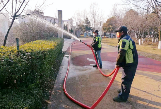 春季苗木植被从“休眠”中“醒来”,进入生长期,需水量大幅增加。为确保区内绿化苗木健康生长,工作人员对区内绿地、植被、灌木等进行科学浇灌,促进绿化苗木萌芽返青,为全年苗木及绿地精细化管理打好基础。