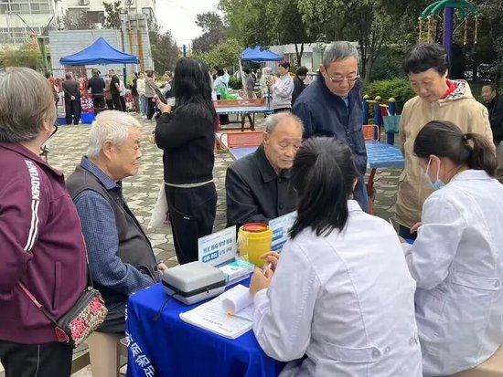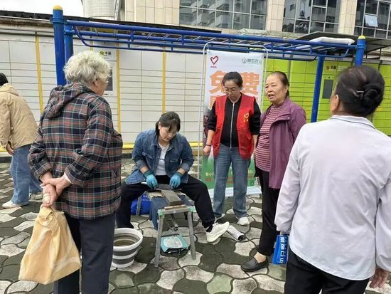 义诊服务也受到大家的欢迎,医护人员为居民提供血压测量、健康问诊等服务,细致记录健康信息,给予个性化建议;公益服务区,志愿者为居民提供工具维修、理发、政策咨询等服务。