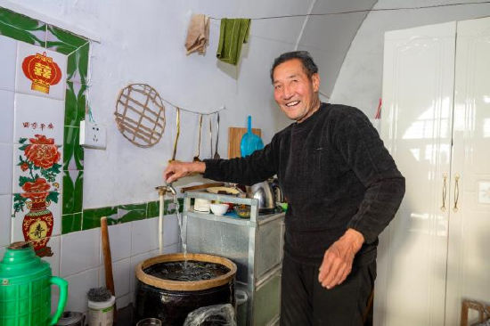“小时候靠人挑水,后来家家修蓄水池存雨水。可雨水熬粥,上面总漂着一层白乎乎的东西,没一点米香,必须得抓把碱放进去,才能咽得下去。现在这水,是从地下550米抽上来的,又经过机器净化,水清亮亮的,没一点怪味,自来水管直接通到灶台上,这样的好日子,以前想都不敢想啊!”