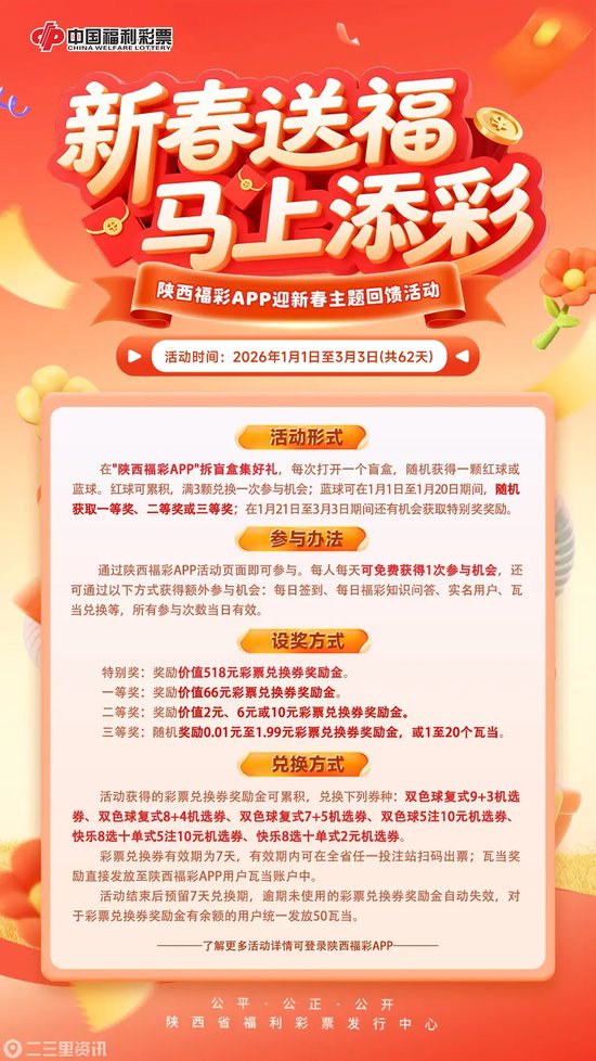 关注礼启新篇,马跃新程,陕西福彩2026年“新春送福 马上添彩”主题回馈活动,多重好礼伴您欢乐过大年!