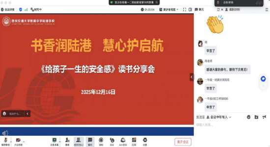 此外,学校还举办多场家校共育沙龙和家长读书分享会(线上),特别邀请兴庆校区老师带来专题讲座,聚焦孩子成长关键期的陪伴难题。家长读书分享会带动了更多的家长思考家庭教育和科学育儿。多元的家校互动,搭建起“学校引导、家长参与、双向奔赴”的共育机会,让教育合力更强劲,让学生的成长之路更顺畅。