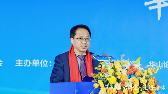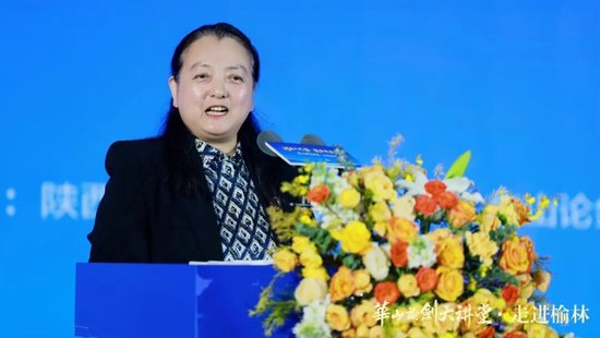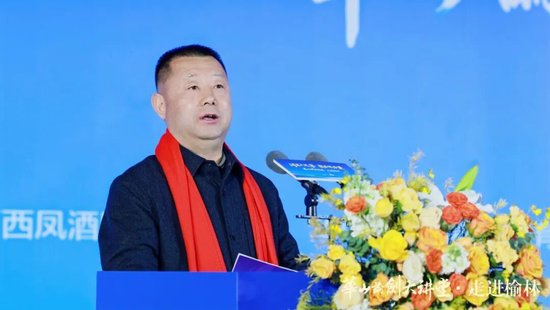 陕西省工商联副主席、省总商会副会长李瑛讲话,她表示华山论剑大讲堂·走进榆林,既是文化版图的拓展,更是文化根脉的深耕与品牌精神、地域精神的深情对话。她盛赞榆林作为边塞重镇的雄浑气魄与人文柔情,这些年来实现从“黑金之城”到“生态绿洲”、从“资源依赖”到“创新驱动”的华丽蝶变,展现出高质量发展的强劲动能。在这片热土上,华山论剑西凤酒逆势突围、奋勇争先,书写了行业寒冬中的“榆林样本”。最后她表示,省工商联将立足职能做好服务,搭建政企高效合作平台,促进各方分享信息、对接资源,助力形成稳固良好的伙伴关系,引导民营企业凝聚合力、融入地方发展,携手实现共同发展。