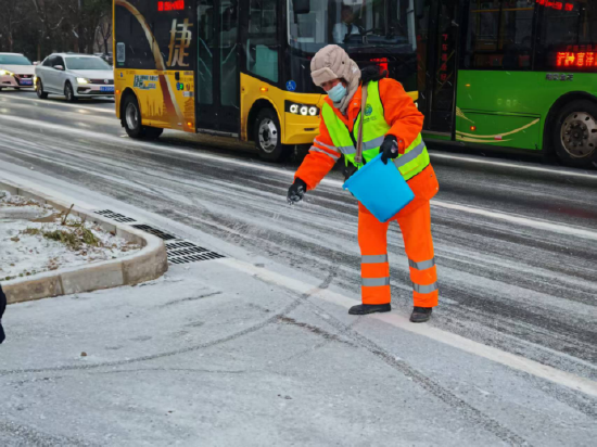 在力量整合上,园区组织了1000余名城管执法人员、3200余名环卫保洁人员,联动交警部门强化交通疏导与安全保障,同时广泛发动8000余家沿街商户、园区企事业单位落实“门前三包”责任,形成“人人参与、共护畅通”的强大合力。物资保障方面,园区提前完成9台大型撒布机、51台雪滚设备的调试检修,储备融雪剂1100吨、雪铲扫把等人工工具14000余个,全面筑牢“机械到位、物资充足、工具齐全”的“备战”防线。
