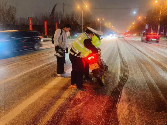 在开展交通疏导和除雪作业的同时,西安公安交管高新大队还加强对西三环科技二路十字辅道等路段夜间施工人员的安全提醒,督促落实防护措施。通过劝离违停车辆、强化安全提示、深化部门联动等方式,进一步排查消除安全隐患,全面提升路面安全管控水平。