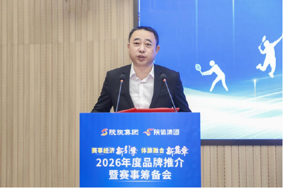赵鹏作2026年度赛事推介,陕体集团全年计划筹备约百场赛事,覆盖14项运动,并通过“票根经济”联动陕旅集团旗下景区、酒店资源,推动“跟着赛事去旅行”消费新模式。