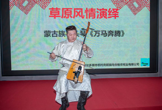 草原风情演绎环节成为活动的一大亮点。《布里亚特蒙古族歌曲》婉转悠扬,仿佛将现场观众带入辽阔的内蒙古草原;蒙古族马头琴演奏《万马奔腾》气势磅礴,旋律激昂,展现了草原儿女的豪迈情怀;随后登场的《鄂尔多斯歌曲》《草原歌曲》等节目,进一步传递了浓郁的草原文化气息,赢得了现场观众的阵阵掌声。
