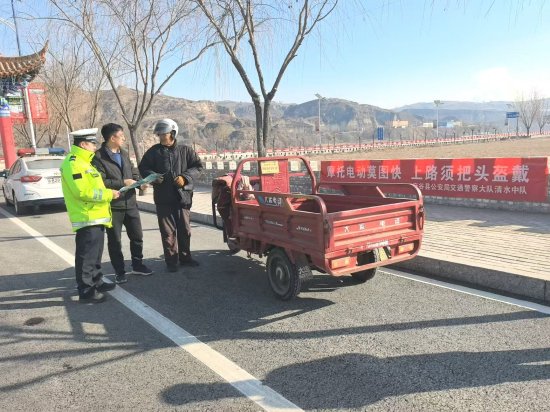 关注新春启序,平安同行。为切实增强群众春节期间交通安全意识,有效防范和减少辖区道路交通事故,守护群众平安返乡、欢乐过节,府谷县公安局交通管理大队清水中队精心部署、精准发力,组织开展形式多样的交通安全宣传活动,全力营造安全、文明、有序的道路交通环境,让交通安全护航新春佳节。