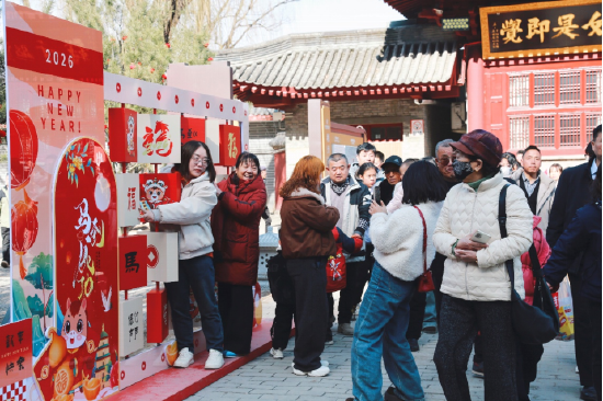 当日,大佛寺“古刹寻踪 马上有福”主题活动同步上线,8处融合石窟文化、马年生肖等元素的互动打卡装置遍布景区,藏着“马上有福”“马到成功”的美好寓意,让游客沉浸式感受丝路新春的独特仪式感。