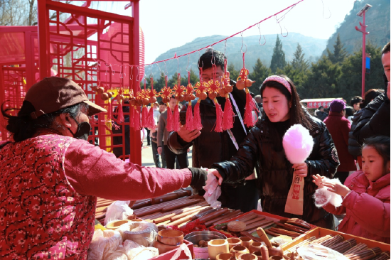 舌尖上的新春盛宴同样精彩,正月初一至初十,大佛寺景区豳风集市开集,彬州御面、煎汤面等特色小吃,各类文创、农特产品齐聚,实现美食与文化消费一站式体验。正月十一水帘坊豳风集市同步开启,正月十五“团圆食刻”温情补给站还将免费送热元宵,“碗底藏福”活动以印有祈福语的纸碗,为游客送上新年美好祝福。