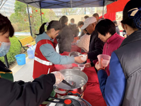 “马蹄踏雪迎春到,昂首扬尾志气高,打一成语,谁知道?”“我知道啦,谜底是‘马到成功’!”活动现场张灯结彩,年味十足。一条条“马年限定”的趣味灯谜吸引众多居民驻足思考、竞相猜答,猜中者即可兑换一份精美小礼品。另一边,现场烹煮的汤圆热气腾腾。社区工作人员、物业人员与志愿者一起热情服务,将一碗碗象征团圆美满的汤圆送到现场居民手中,还特意为保洁员送上节日的甜蜜与关怀。大家品尝着汤圆,分享着喜悦,现场欢声笑语不断,暖意融融。