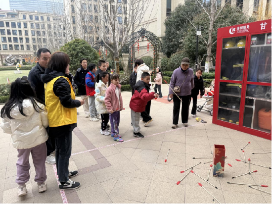 作为元宵佳节的标志性符号,花灯元素必不可少。元宵节当天,新筑街道全运村甘棠苑社区新时代文明实践站联合绿城物业中心举办“民俗雅趣迎元宵”主题活动,约300名居民共赴上元之约。活动现场,手工老师和志愿者指导孩子们折叠搭建,一盏盏色彩鲜艳的花灯跃然眼前。灯谜区挂满各类谜面,居民驻足探讨、踊跃猜答,猜中可获奖品;投壶区里,小朋友凝神投箭,寄托马年美好期许。工作人员还为居民递上热元宵,让大家在民俗体验中感受温情,共度温馨祥和的佳节,既丰富了居民精神文化生活,也搭建了邻里交流桥梁。