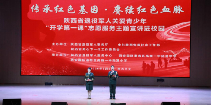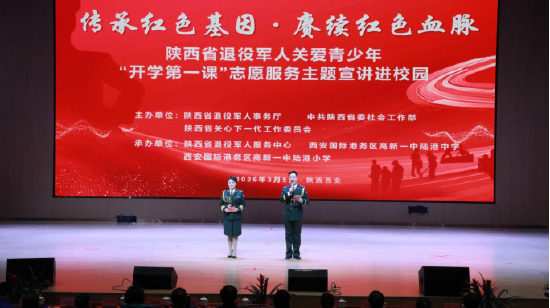 当日上午,陕西省退役军人事务厅联合中共陕西省委社会工作部、陕西省关心下一代工作委员会,走进高新一中陆港学校,开展“传承红色基因 赓续红色血脉 弘扬雷锋精神”—— 陕西退役军人关爱青少年“开学第一课”志愿服务主题宣讲进校园活动。