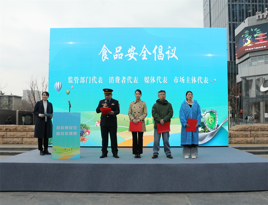 监管部门代表、消费者代表、媒体代表、经营主体代表现场发出倡议,号召各方携手同行,积极构建共建共治共享食品安全新格局。活动现场还组织开展了“市监志愿”活动,向公众展示并提供食品快速检测服务。