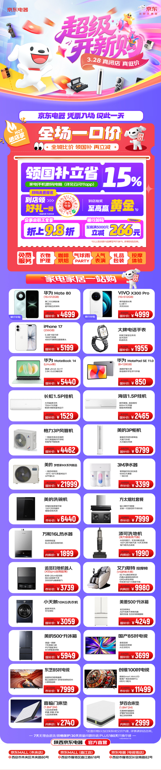 京东MALL未央店:西安市未央区未央路80号盛龙广场(联系人:王经理17392701883)