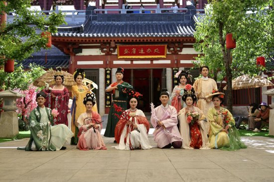 值得一提的是,园内每日近百场沉浸式互动演出也在同步上演,《唐韵茶席》《科举》《舞林大会》《云翎雄风》等节目生动再现唐宫盛景。一幕幕鲜活场景次第铺展,让传统文化不再是静止的陈列,而是可感、可触、可参与的活态传承。